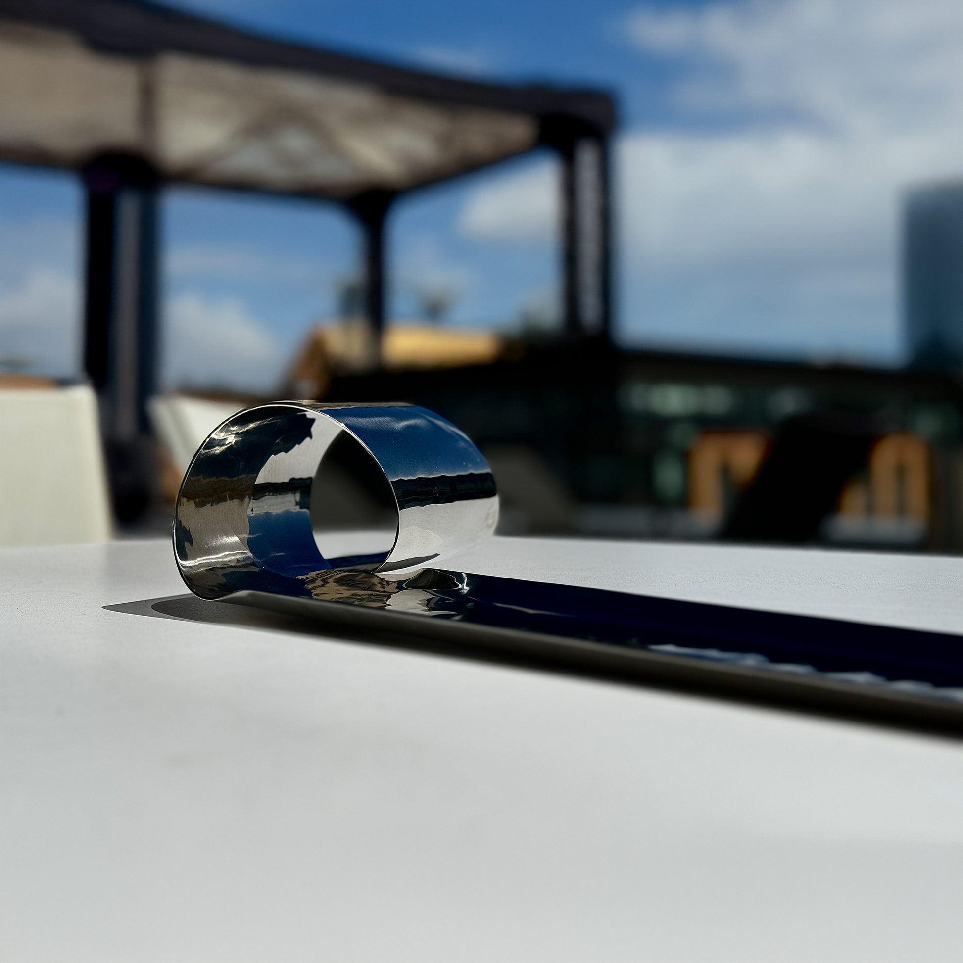 Hammered by hand, this distinctive texture not only adds visual interest but also enhances the reflections, creating a play of light and shadow.